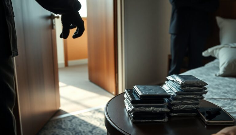A seguito della verifica più approfondita che ha evidenziato elementi compatibili con il reato di ricettazione, gli agenti hanno proceduto al sequestro dei dispositivi rinvenuti. Sul piano d’ingresso della stanza sono stati recuperati sette telefoni cellulari, di cui tre avvolti nella carta stagnola e uno ancora parzialmente arrotolato nel rotolo di stagnola. La tecnica era chiaramente finalizzata a rendere i dispositivi difficili da localizzare tramite rete.