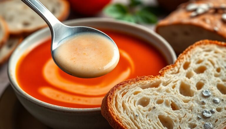Zuppa di pomodoro fermentato e pane croccante