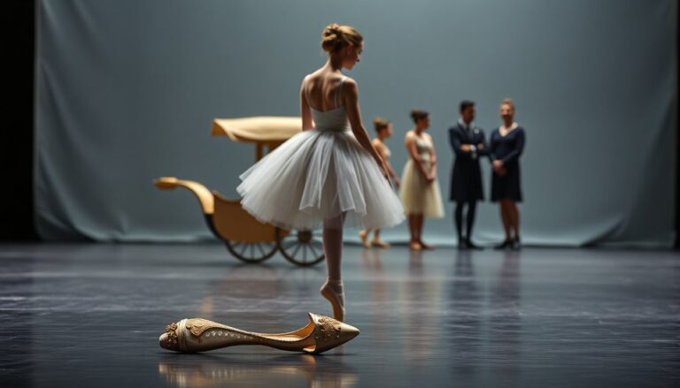 Scenografia e costumi di Cordelia Matthes costruiscono un mondo fiabesco denso di dettagli: carrozze, cavalli, abiti e la celebre scarpetta convivono tra il familiare e l’immaginifico. Questa estetica valorizza le gag e sostiene i movimenti dei danzatori, offrendo allo stesso tempo chiarezza narrativa e piacere visivo.