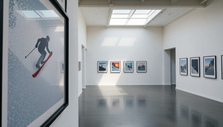 Il programma espositivo copre un ampio spettro di sport praticati su neve e ghiaccio: oltre al sci alpino, sono presenti rappresentazioni di biathlon, bob, sci di fondo, curling, pattinaggio di figura, sci acrobatico, hockey su ghiaccio, slittino, combinata nordica, short track, skeleton e salto, tra gli altri. Ogni disciplina è interpretata secondo una chiave visiva specifica, che enfatizza aspetti come la velocità, la precisione tattica o la poetica del gesto.