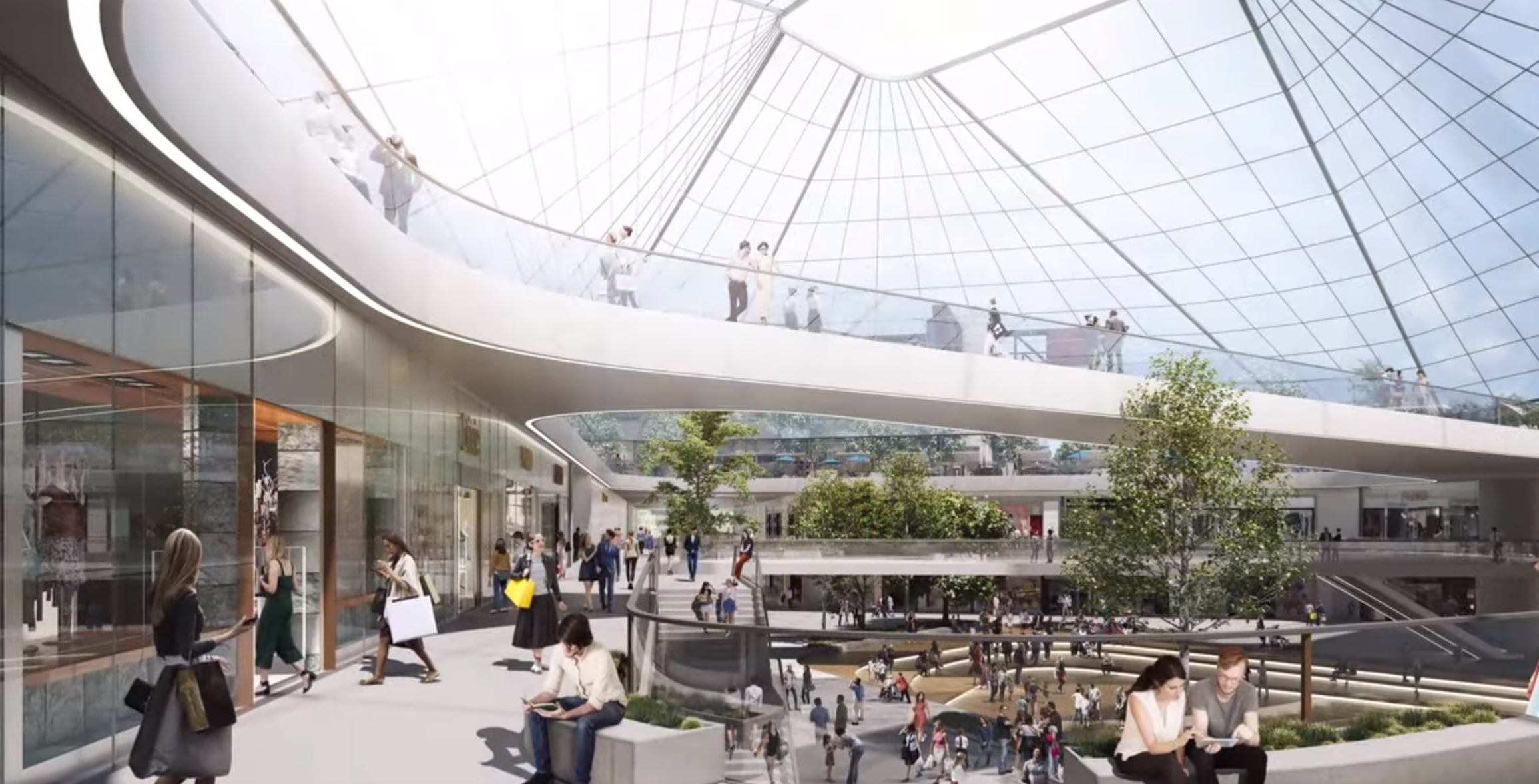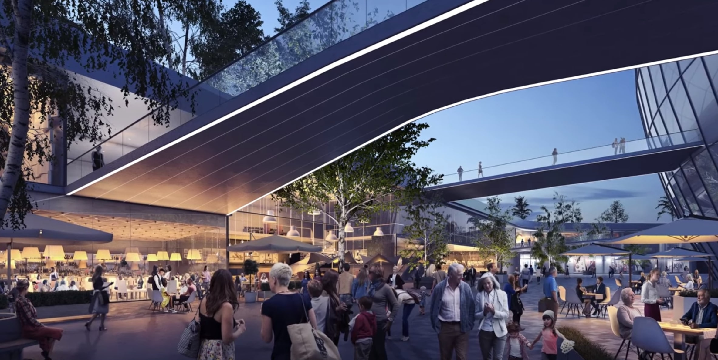 Molto diverso il principio che sottostà all’idea del consorzio Manica-Cmr: la forma dello stadio in questo caso sarebbe ovale. Una scelta simbolica, con due anelli che si intersecano, a rappresentare il desiderio dei due club della città di portare avanti un progetto comune. In questo caso le strutture esterne saranno più lontane dall’edificio, poste al limitare di un’ampia area verde.
